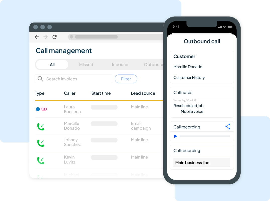 Access call history, recordings, and notes from the mobile app or your web browser.