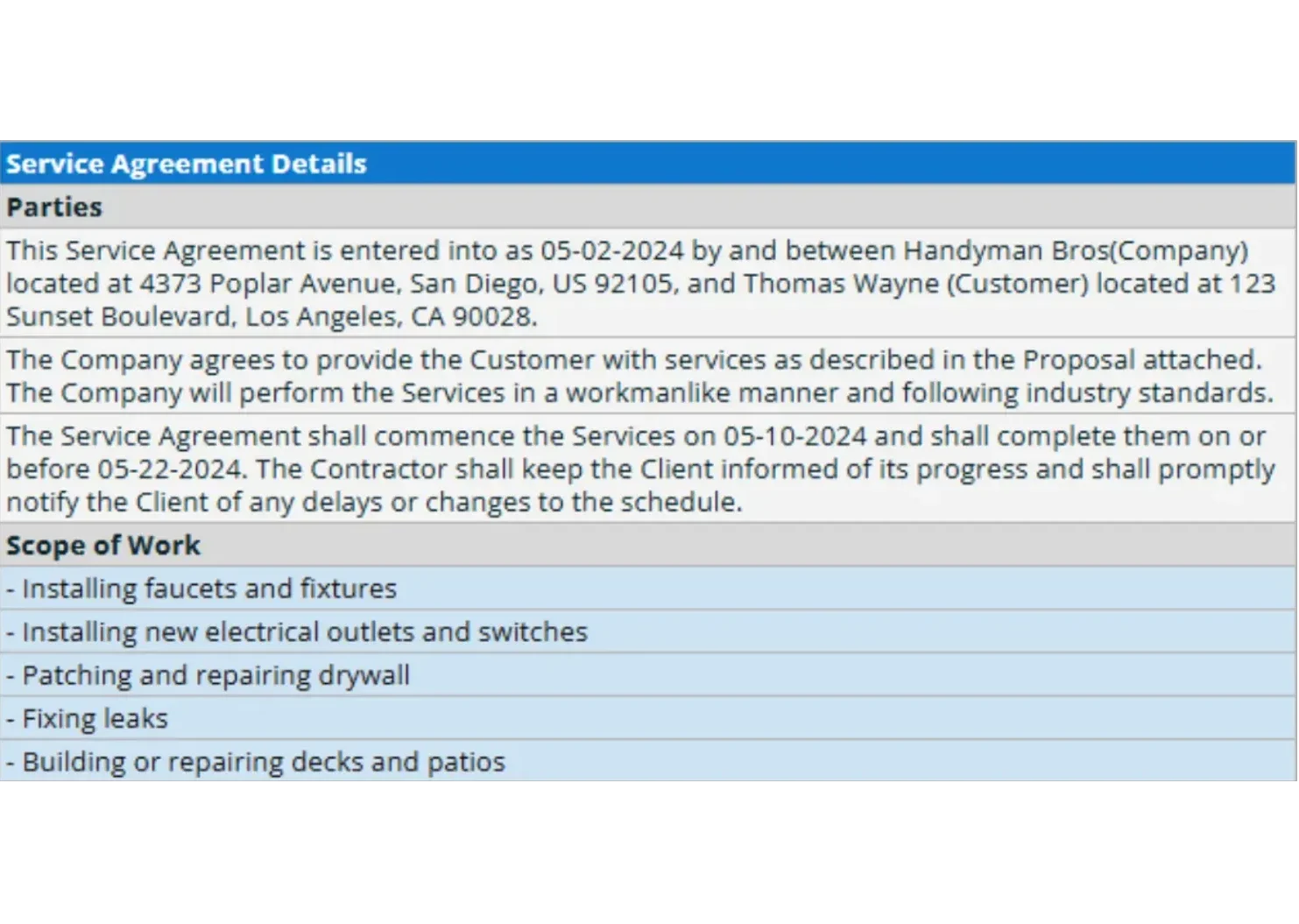 Creating accurate and thorough service agreement is essential for any handyman company. Having a simple, straightforward handyman service agreement template makes it a whole lot easier.