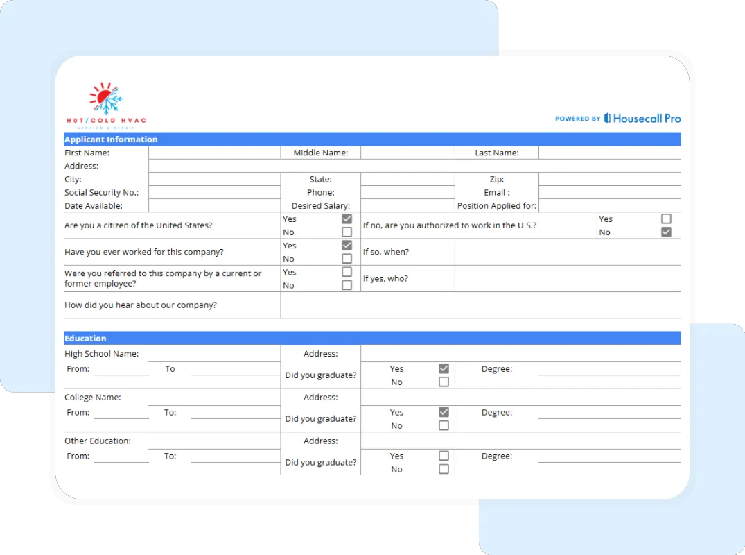 Here’s everything included in our HVAC employment application template