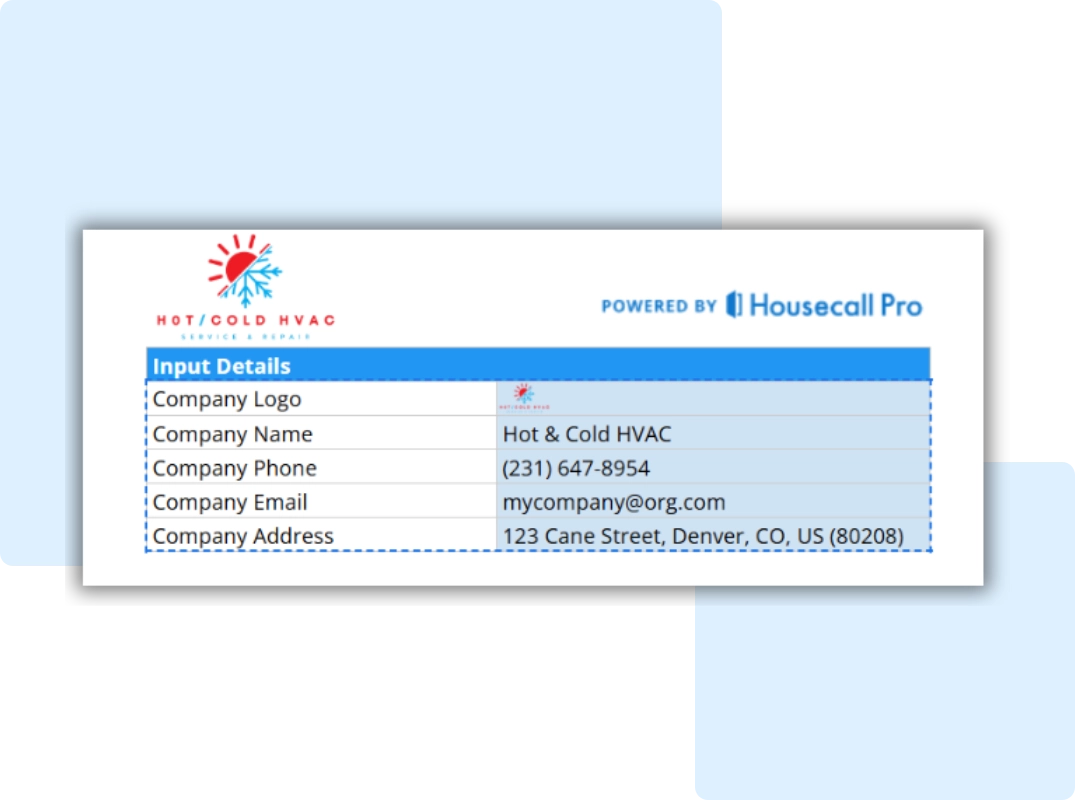 This template is more than a blank table. It has built-in structure, logic, and convenience features designed for HVAC professionals: