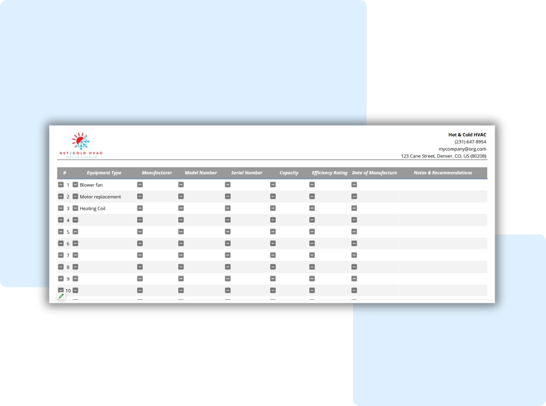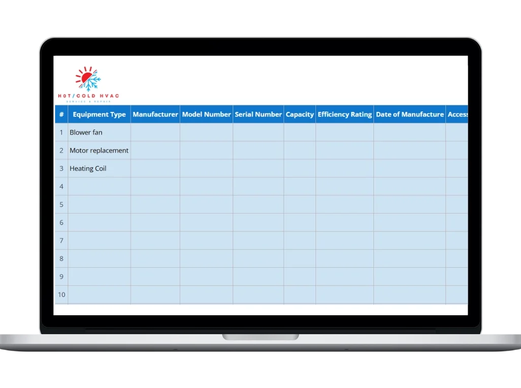 A structured HVAC equipment list template helps you: