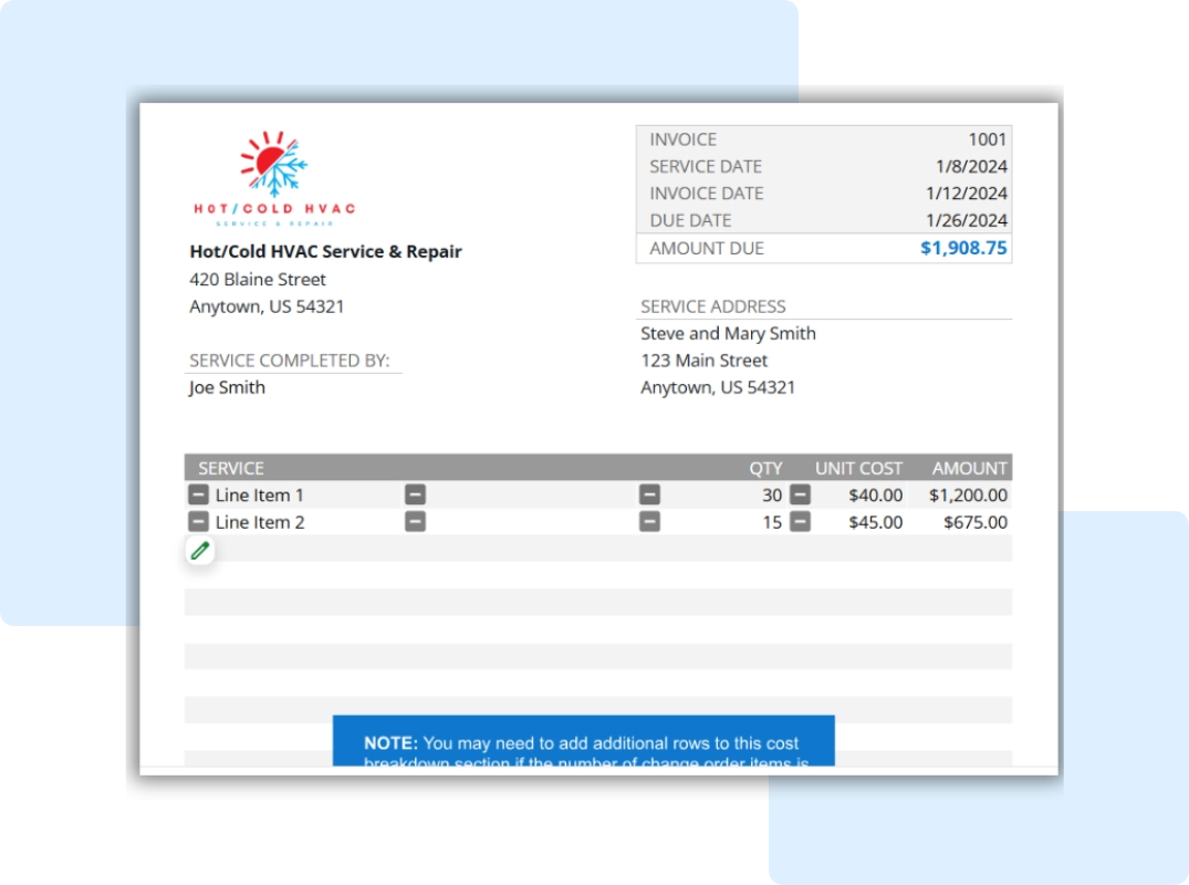 For some HVAC companies, the invoicing process can be like a real-life game of telephone. Techs will wrap up a job and head back to the office. There, a manager will use any job notes to create an invoice that will be mailed or delivered to the customer by hand at some point in the future. In other cases, techs will call the office from their trucks with all the details of the job. Then they’ll wait for a call back from someone who can authorize it all. Once approved, the tech writes out the invoice and heads back to the door to deliver it to the customer.