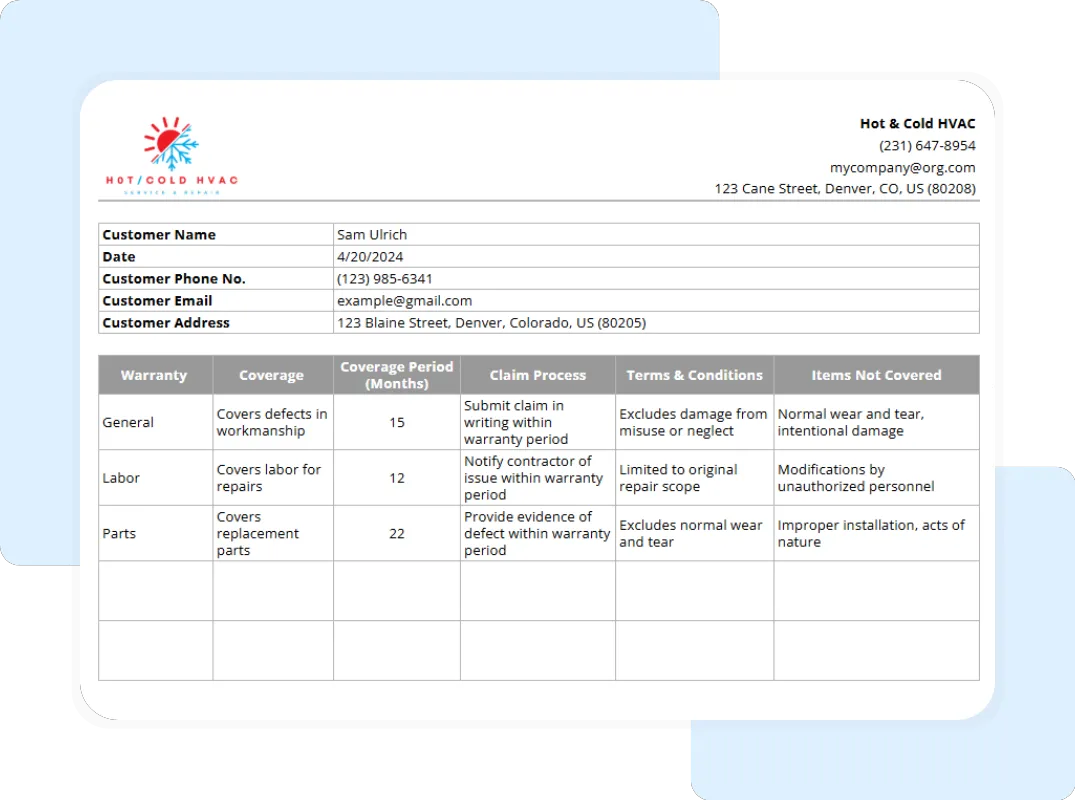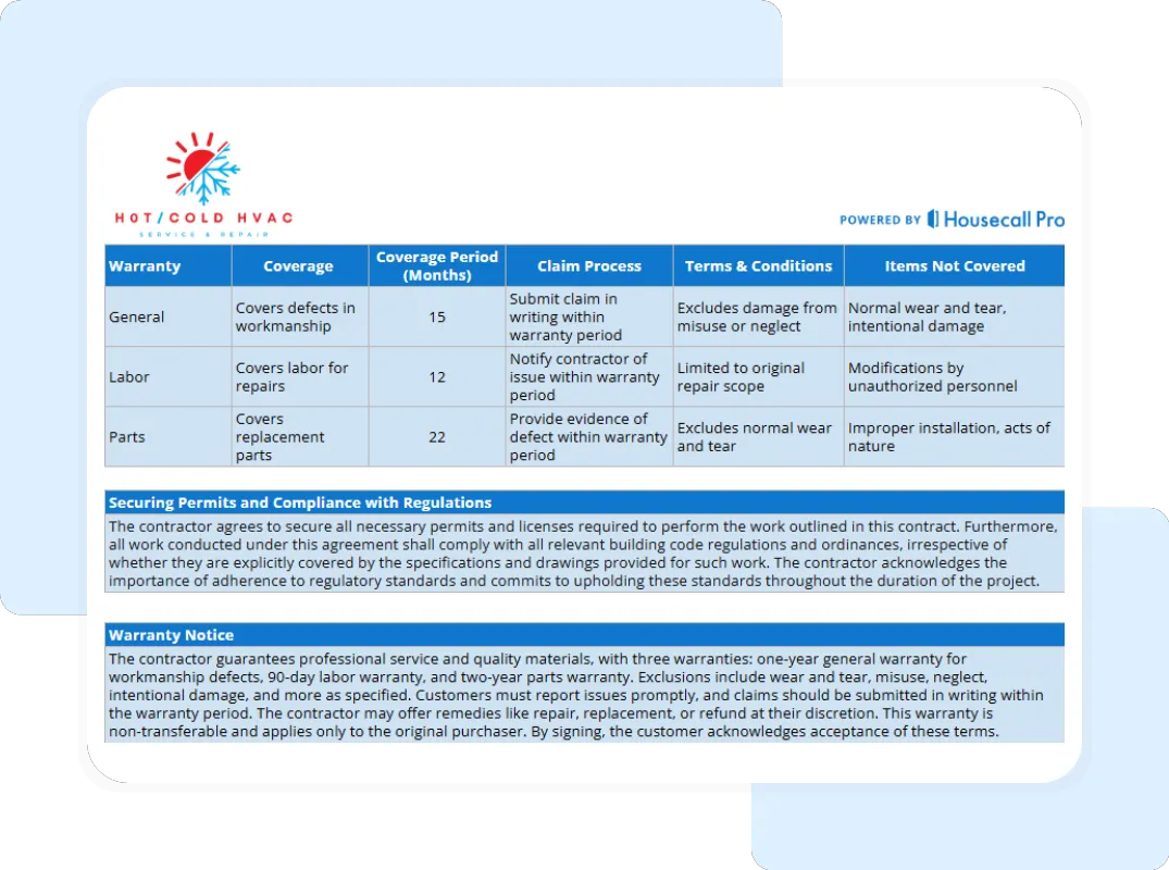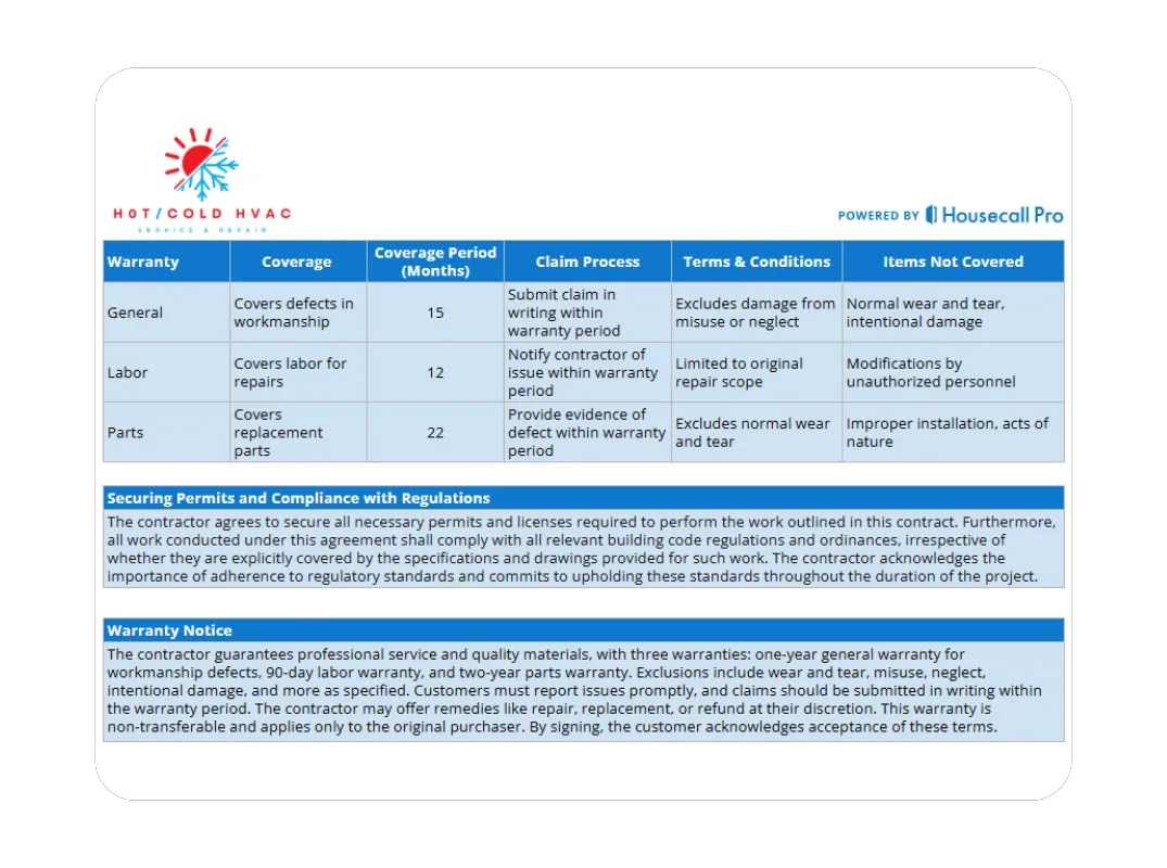 For service-based HVAC businesses, warranties typically fall into three categories: