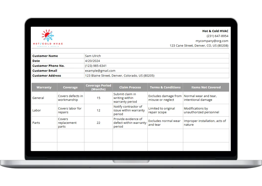 Accelerates the Service Cycle In the HVAC world, information is speed. The next time a customer calls with an issue, your dispatcher can look at the Company & Customer Details and the Warranty Details to know exactly if the system is still under a labor guarantee. This rapid access to data keeps your trucks moving efficiently and prevents arguments over billing for service calls.