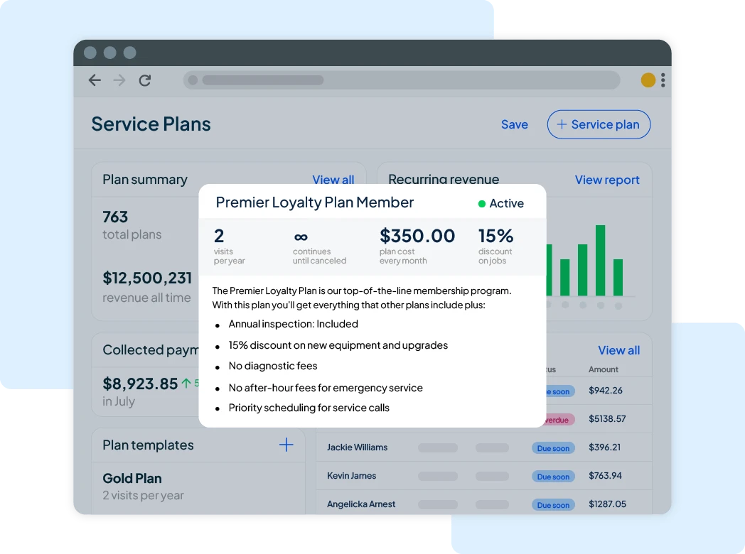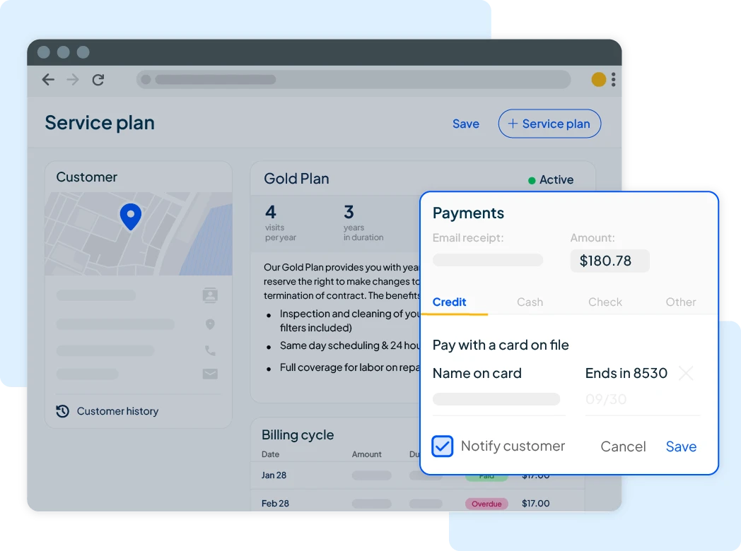 Easily create service plans for residential or commercial customers in minutes.