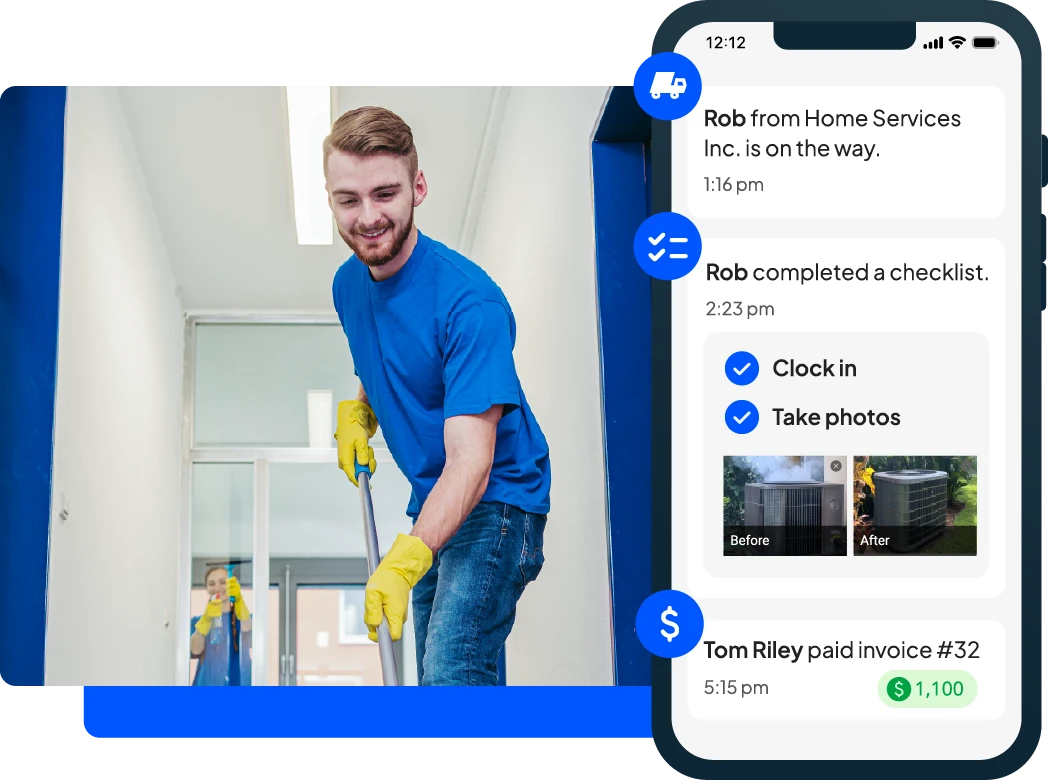 Easily manage your calendar, stay organized, and update your customers and crew in real time with scheduling software for janitorial services.
